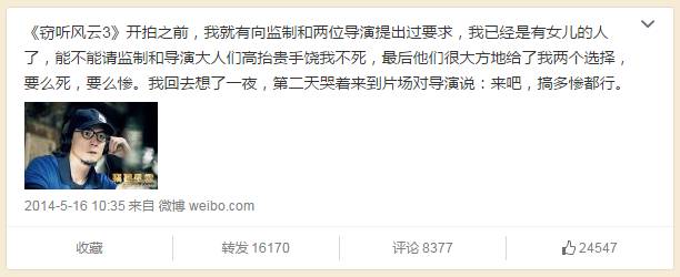 就这样一路走下来,到《窃听风云3》的时候,连吴彦祖自己也忍不了了, 说“(最初)我不知道演什么,但是我知道我一定会死。”以至于后来他演的每一部电影,我们采访时见到导演就问:“这次吴彦祖会死得比上次还惨吗?”(心疼……)