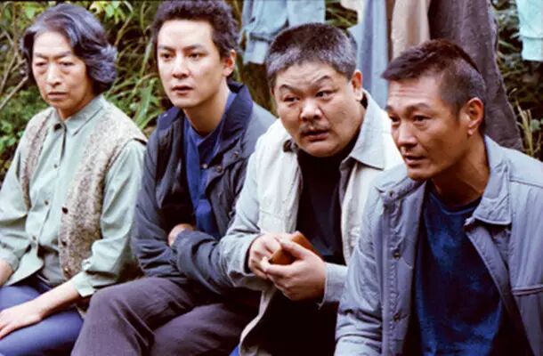 《新宿事件》里演偷渡客,这造型也是太敬业了,然并卵,还是被黑帮老大一刀毁容、斩断右手,最后逃不过被乱刀捅死。。。